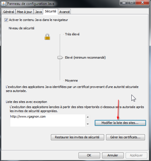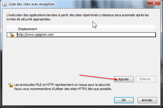 So if you are on Win7, create the text file exception.sites with the required line for rgagnon.com as mentioned above.